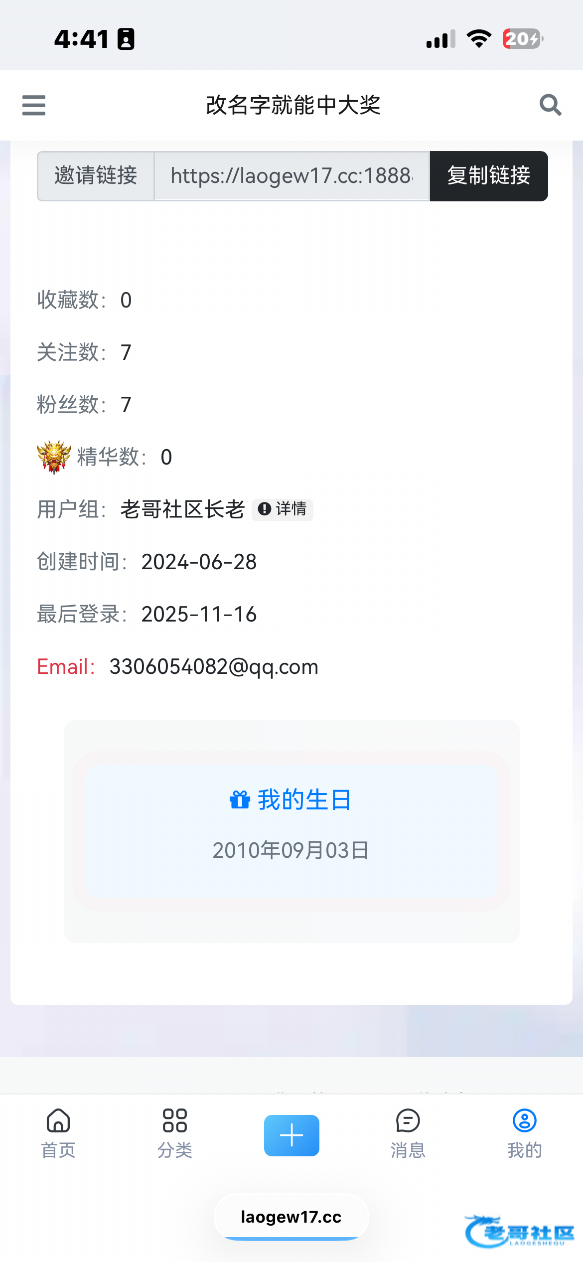 天天在老哥网打卡跟上班一样,一天不逛几小时等于没上班一样。所有的1+1都必玩。没中过什么除了牛子以上的大奖。还是感谢老哥网。每次在饿的时候拯救了我很多次