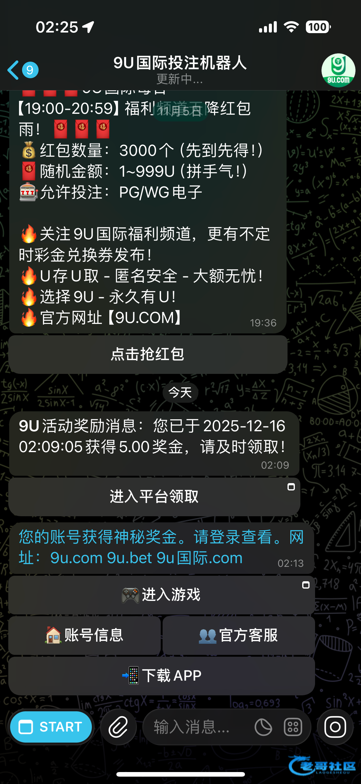 有没有发送这条信息有的话上号就有5u