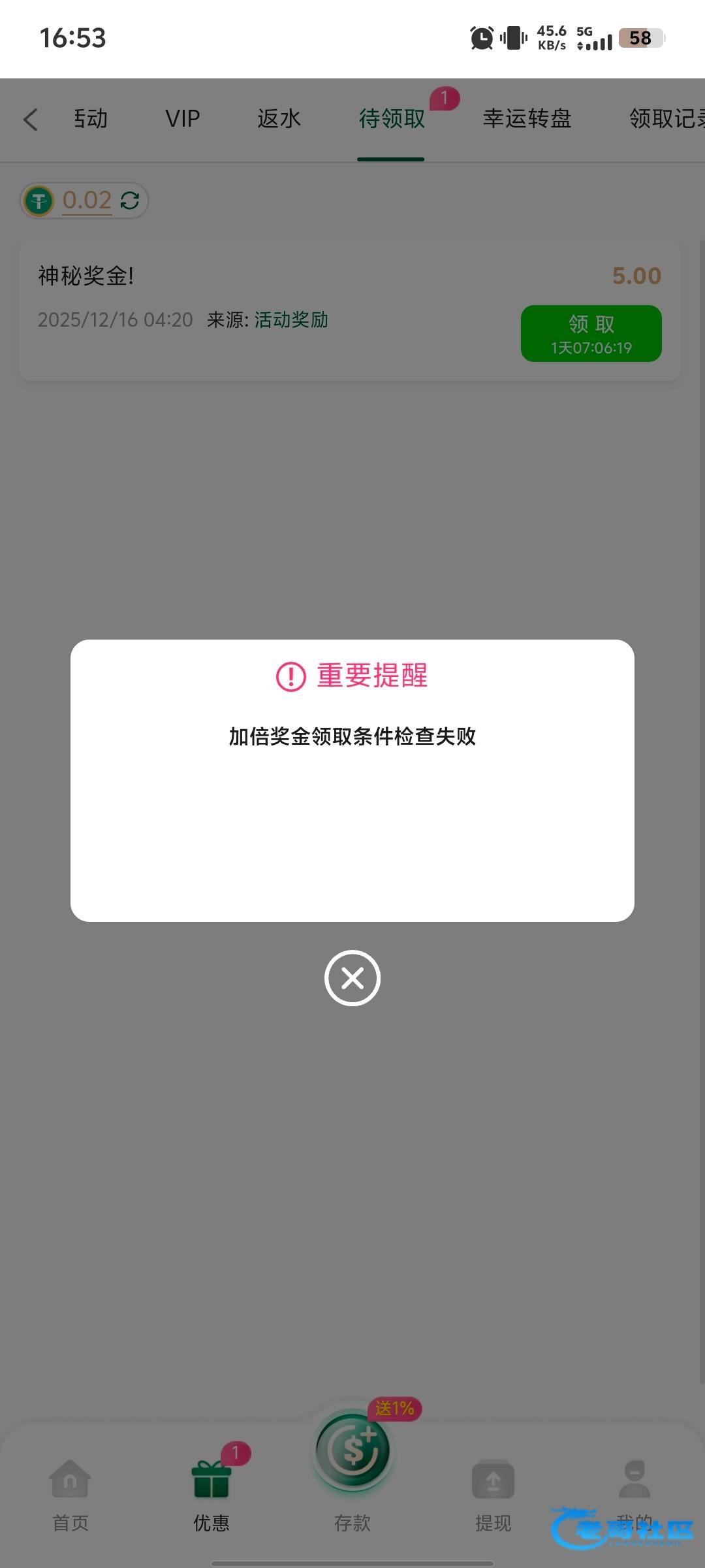 新人注册有充值送5u,没打出来:神秘有5u,也没打出来